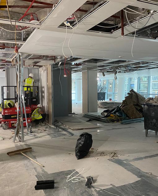 - Terminating power points, light fittings, wiring, trunking, cables or data points installed.